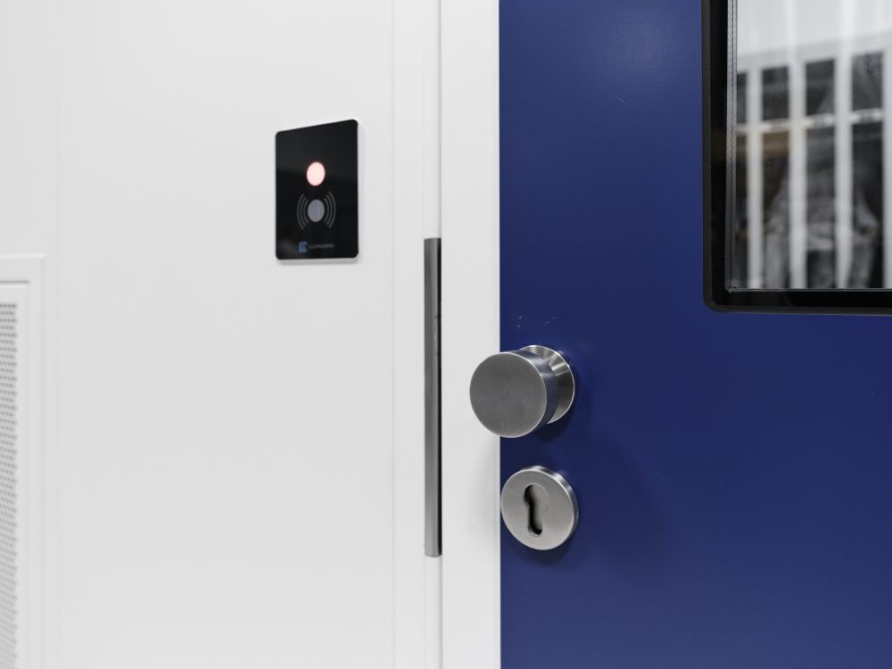 Türen in Reinräumen stellen oft die Grenze zwischen dem kontrollierten Bereich und der Außenumgebung dar. Verschiedene Arten von Türen sind daher ein kritischer Punkt und eine Barriere vor dem Raum, in dem die Atmosphäre kontrolliert wird, und deshalb ist hier ein geordnetes Öffnungs- und Schließregime der Türen wichtig. Das Öffnungsregime der Türen in einem solchen Bereich wird über ein Interlock-System reguliert, das das gleichzeitige Öffnen der Türen des Übergangsbereichs verhindert und so direkt eine Kontamination verhindert.