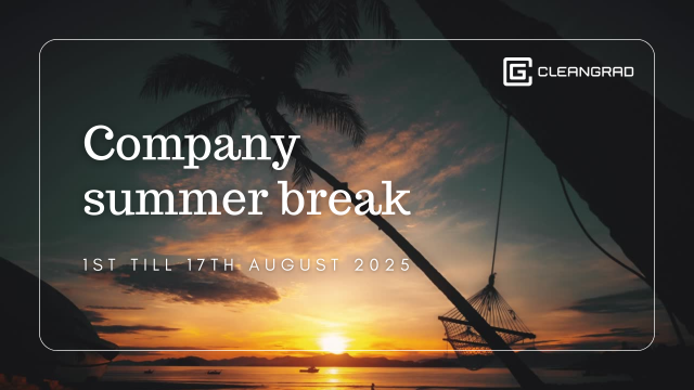 V tem času pisarne in proizvodnja ne bodo obratovali, odzivni časi bodo lahko daljši. Prosimo, da to upoštevate pri načrtovanju svojih aktivnosti. Montaža bo v tem obdobju potekale po predvidenem planu. Z rednim delom bomo nadaljevali v ponedeljek, 18. avgusta 2025. Zahvaljujemo se vam za razumevanje in uspešno sodelovanje.